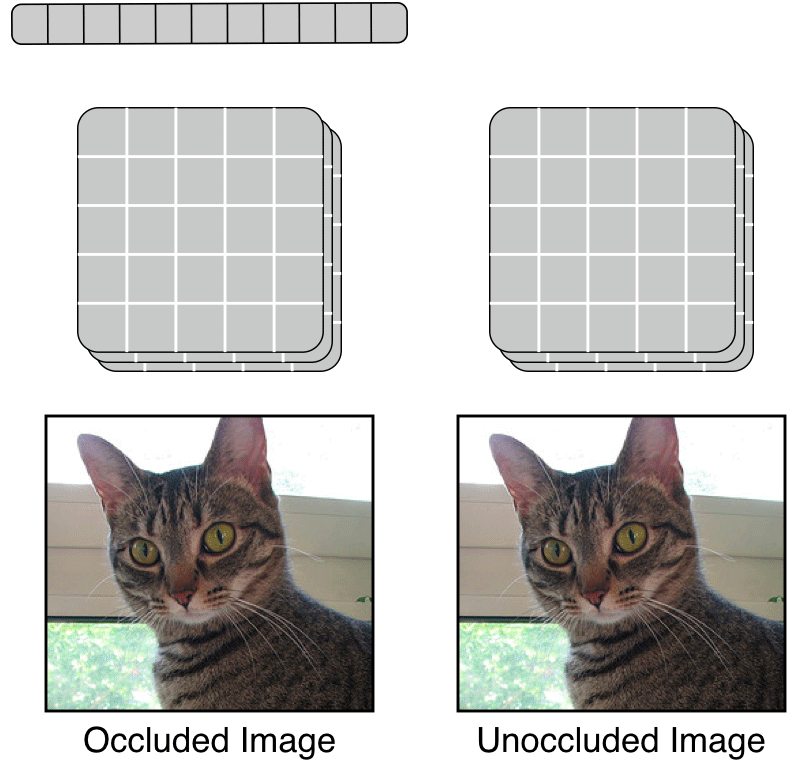 But there is only a subset of locations we’re actually interested in. Worse still, maximizing mutual information between the whole image input and the output representation, which we refer to as global DIM in the paper, will be biased toward learning features that are unrelated, as their sum has more unique information than redundant locations. For example, the ear, eye, and fur all indicate information about the same thing—“a cat”—so encoding all of these locations won’t increase the mutual information as much as encoding the foliage in the background.